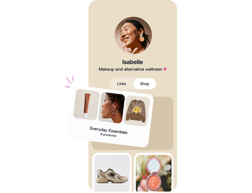 Simply add products to your Shop, organize them into collections for your followers to browse. Whenever someone makes a purchase through your Shop, you'll earn a commission.